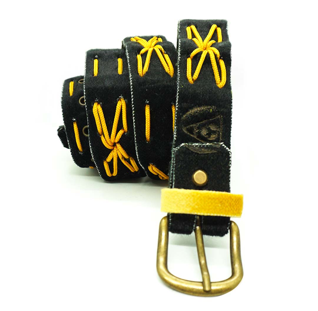 Le cinture/collari sono fatti in tessilfoca (‘’pelli di foca’’) riciclata, costituita da fibra naturale (lama mohair), fibra sintetica o miste. Tutte le pelli da noi utilizzate sono recuperate in quanto non più utilizzabili per la pratica dello sci alpinismo. Anche gli inserti delle fibbie e i passanti sono fatti con ritagli di pelli.