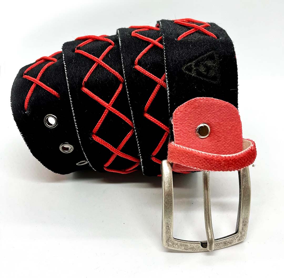 Le cinture/collari sono fatti in tessilfoca (‘’pelli di foca’’) riciclata, costituita da fibra naturale (lama mohair), fibra sintetica o miste. Tutte le pelli da noi utilizzate sono recuperate in quanto non più utilizzabili per la pratica dello sci alpinismo. Anche gli inserti delle fibbie e i passanti sono fatti con ritagli di pelli.