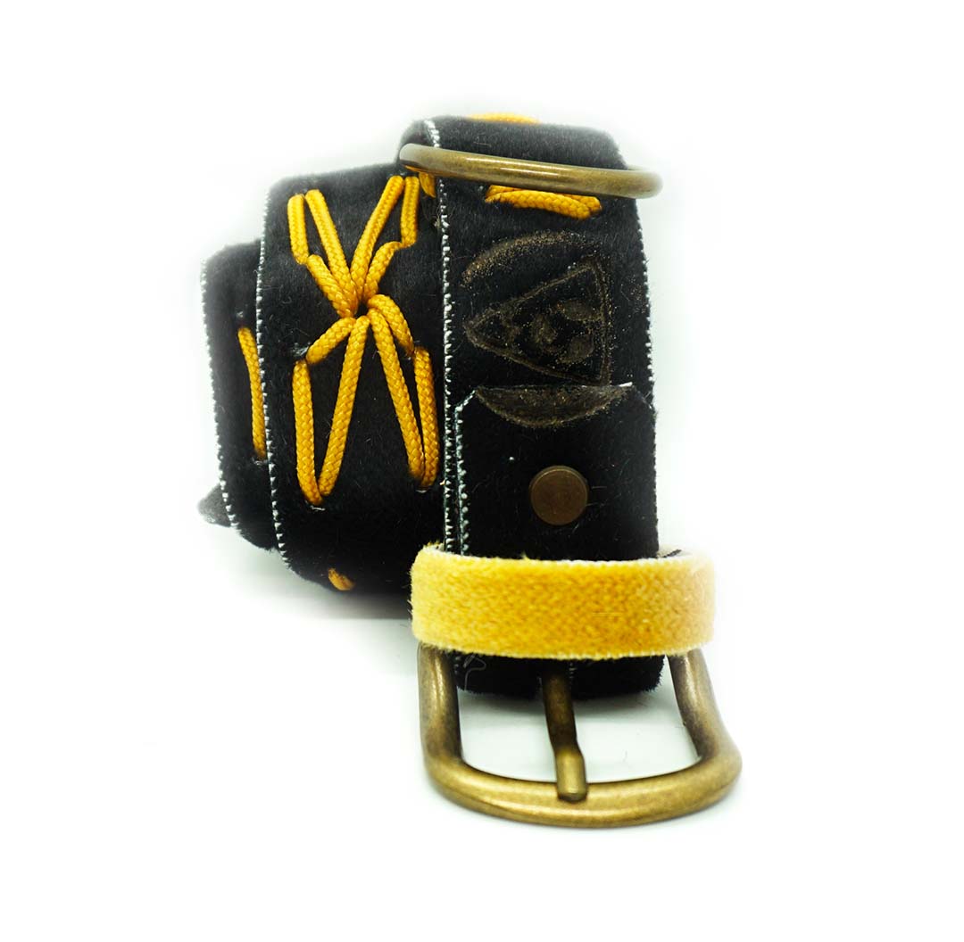 Le cinture/collari sono fatti in tessilfoca (‘’pelli di foca’’) riciclata, costituita da fibra naturale (lama mohair), fibra sintetica o miste. Tutte le pelli da noi utilizzate sono recuperate in quanto non più utilizzabili per la pratica dello sci alpinismo. Anche gli inserti delle fibbie e i passanti sono fatti con ritagli di pelli.