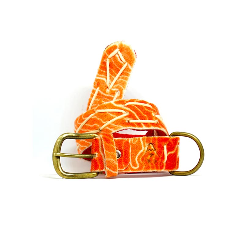 Le cinture/collari sono fatti in tessilfoca (‘’pelli di foca’’) riciclata, costituita da fibra naturale (lama mohair), fibra sintetica o miste. Tutte le pelli da noi utilizzate sono recuperate in quanto non più utilizzabili per la pratica dello sci alpinismo. Anche gli inserti delle fibbie e i passanti sono fatti con ritagli di pelli.