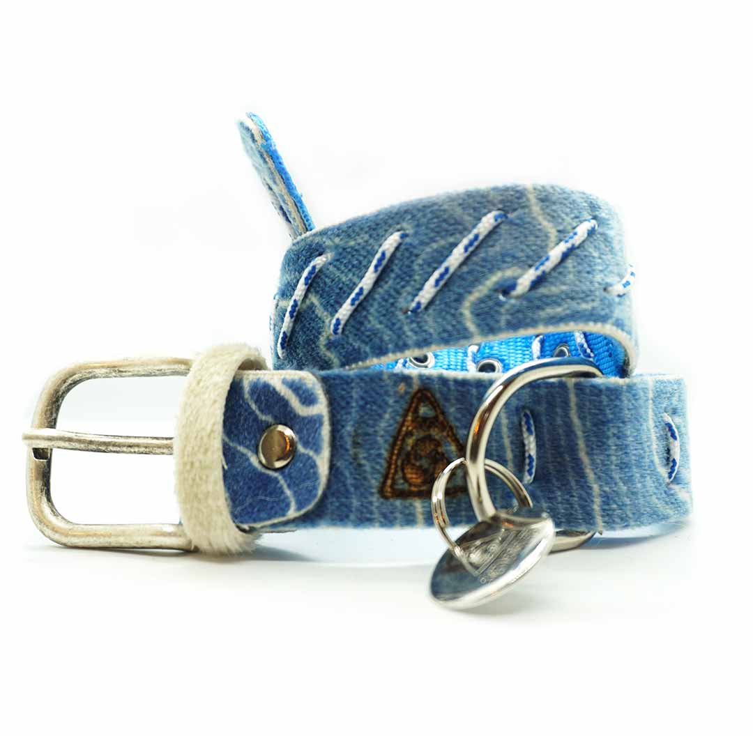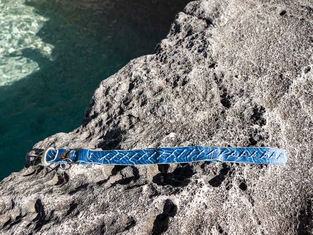 Le cinture/collari sono fatti in tessilfoca (‘’pelli di foca’’) riciclata, costituita da fibra naturale (lama mohair), fibra sintetica o miste. Tutte le pelli da noi utilizzate sono recuperate in quanto non più utilizzabili per la pratica dello sci alpinismo. Anche gli inserti delle fibbie e i passanti sono fatti con ritagli di pelli.