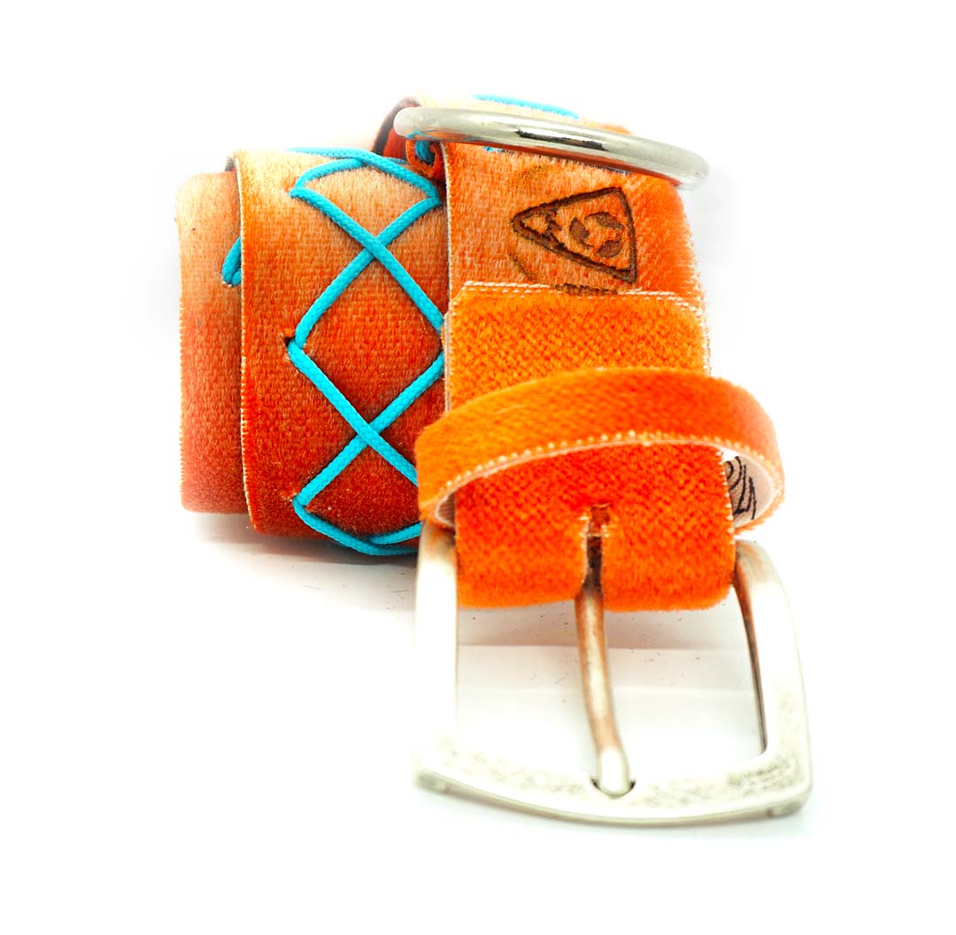 Le cinture/collari sono fatti in tessilfoca (‘’pelli di foca’’) riciclata, costituita da fibra naturale (lama mohair), fibra sintetica o miste. Tutte le pelli da noi utilizzate sono recuperate in quanto non più utilizzabili per la pratica dello sci alpinismo. Anche gli inserti delle fibbie e i passanti sono fatti con ritagli di pelli.