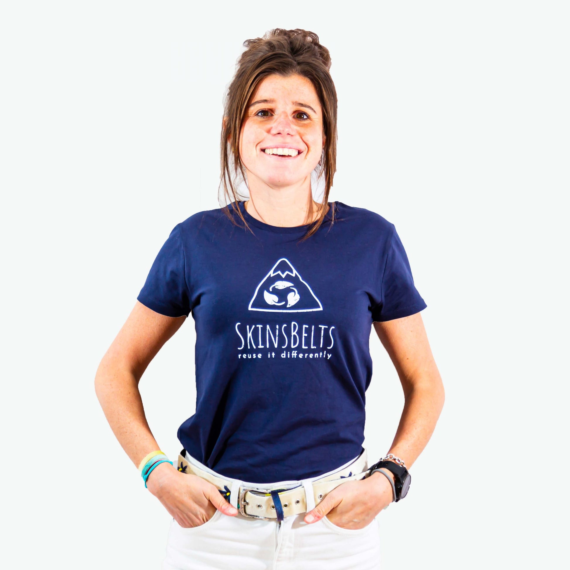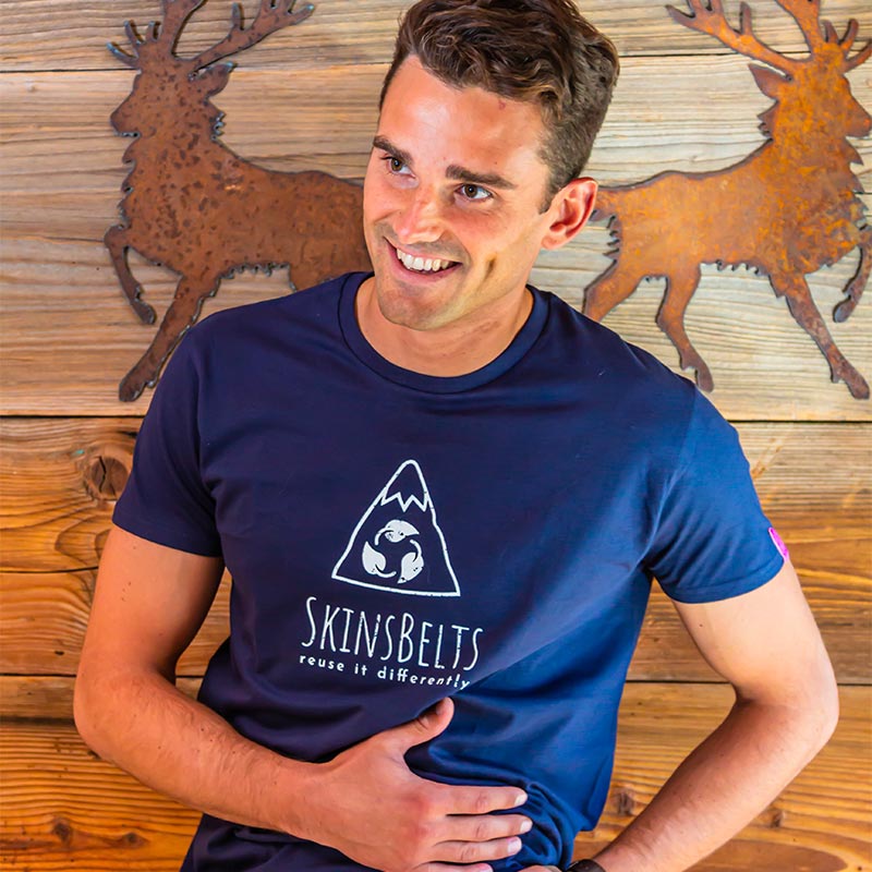 Per dare un tocco di personalità nello stile SkinsBelts abbiamo applicato ad ogni maglietta una patch di “pelle” a contrasto, ricavata dai ritagli di lavorazione, in modo da ridurre ancora di più gli scarti di produzione e cavalcare l’onda del nostro motto Reuse it differently.